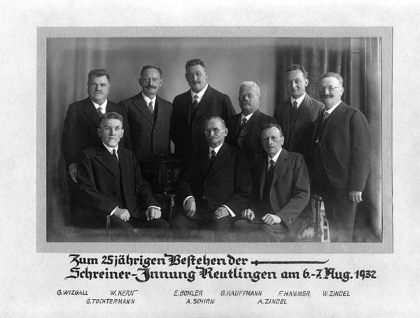 6. August 1932 | Im Rahmen des Landesverbandstages der württembergischen Schreinerinnungen findet das 25-jähriges Jubiläum in Reutlingen statt. Die Innung erhält von der Handwerkskammer eine silberne Tischglocke. |